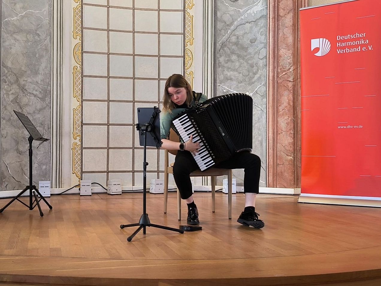 Anna-Lena Kreher erspielte sich in der Kategorie "Akkordeon Solo (Professionals)" Platz 8 und erhielt das Prädikat "ausgezeichnet". Herzlichen Glückwunsch!