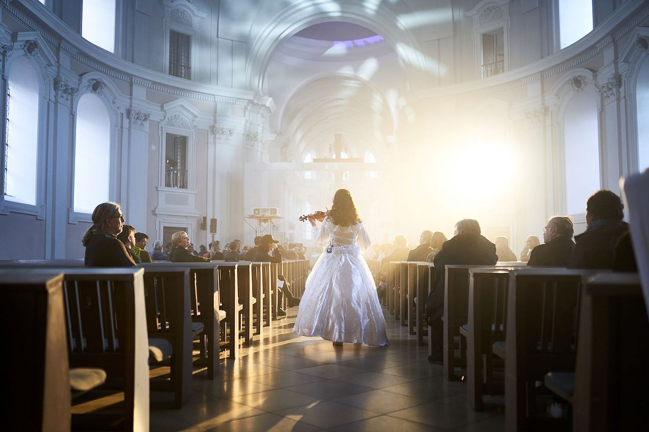 Der Preis für Originalität geht an chaos|cadence and friends aus Lübeck mit ihrer Aufführung »Post-Bodies {corporeal.code}« am 30.05. im Segment#1 der Kongresshalle. Wie verändert und prägt modernste Technologie unseren menschlichen Alltag? Mit technischer Virtuosität und medialer Vielfalt wurde beim Publikum ein regelrechter „Wow“-Effekt erzielt. In einer äußerst gelungenen Bespielung des Raumes wurde das Publikum in eine atmosphärische Klangwelt hineingezogen. Die musikalische Qualität an Instrumenten und Elektronik überzeugte die Jury ebenso wie die Auseinandersetzung mit hochaktuellen Themen an einem historisch aufgeladenen Ort.