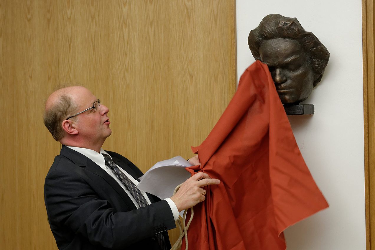 Um den Geist des Meisters auch musikalisch hörbar zu machen, haben drei junge Lehrende der Hochschule die Veranstaltung mit Werken von Beethoven brillant umrahmt. Konstantin Semilakovs beeindruckte das zahlreich erschienene Publikum mit der Grande Sonate in Es-Dur op. 7, Lin Lin Fan überzeugte mit den sechs Bagatellen op. 126 und den 32 Variationen in c-Moll WoO 80. Costin Filipoiu verlieh dem gelungenen Abend mit der Sonate in As-Dur op. 110 einen virtuosen Abschluss. Wir bedanken uns bei allen Beteiligten uns besonders bei Monika Nagel, der Tochter des Bildhauers, für ihr Engagement.
