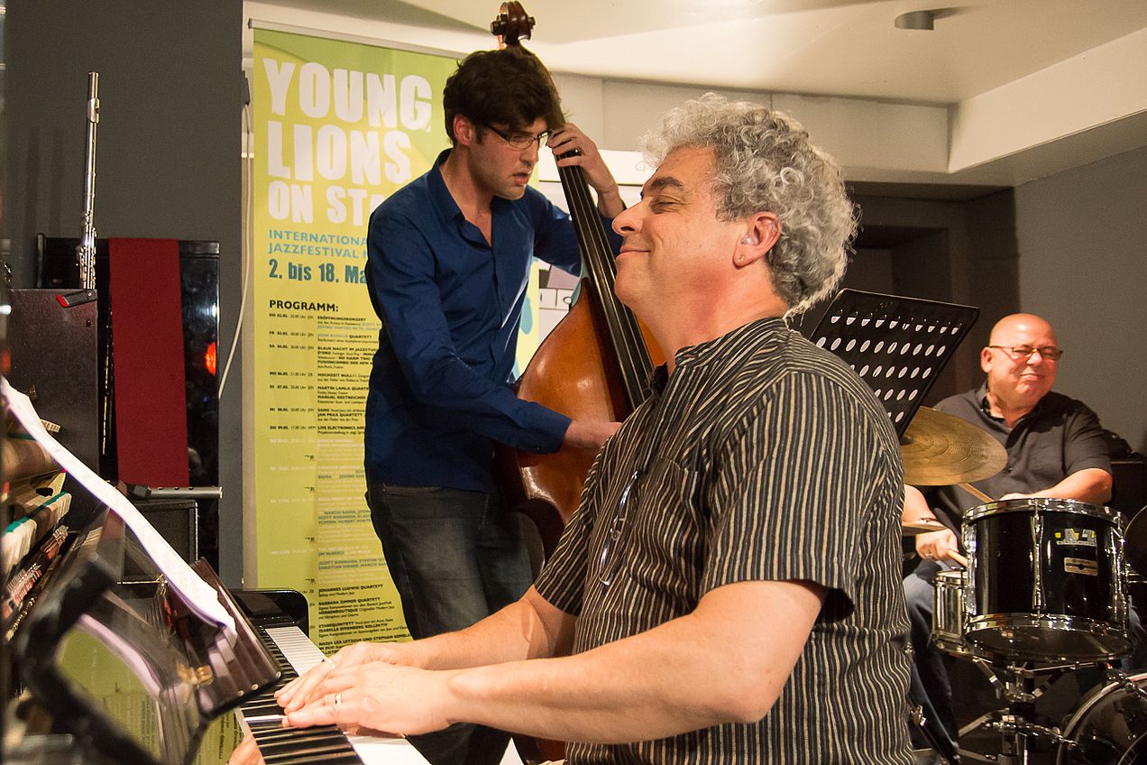 Phantastische Musiker, super Stimmung und ein volles Haus – besser hätte das internationale Jazzfestival "Young Lions on Stage" nicht starten können. Am Donnerstag, dem 2. Mai 2013, präsentierten sich die Artists-in-Residence Scott Robinson (reeds), Jovino Santos Neto (keys) und Marcio Bahia (drums) zusammen mit Festival-Leiter Steffen Schorn (reeds) und dem Hochschul-Studenten Guto Brinholi (bass) im gut gefüllten Jazzstudio. Die Gaststars aus den USA und Brasilien arbeiten nun täglich mit verschiedenen Ensembles der Hochschule. Die Ergebnisse werden am Freitag, dem 10. Mai 2013, beim Konzert mit dem Titel "Creative Universe" im Heilig-Geist-Saal vorgestellt.