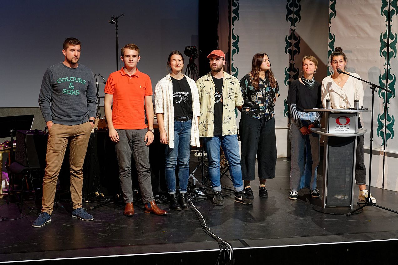 Nach verschiedenen Begrüßungs- und Informationsveranstaltungen fand am Montag, dem 17.10.2022 die Immatrikulationsfeier für unsere neuen Studierenden im Orchestersaal statt. Nach einem musikalischen Vortrag von Rebecca Trescher (cl), Andreas Feith (p), Prof. Christian Diener (b), und Prof. Moritz Baumgärtner (dr) wurden die Studierenden von Hochschulpräsident Prof. Rainer Kotzian begrüßt. Im Anschluss gelang es Prof. Dr. Sebastian Trump die anwesenden Gäste durch eine experimentelle Improvisation mit KI-Instrumenten zu beeindrucken. Valentina Oefele, die Vorsitzende des studentischen Konvents, und Maria Zwerschke, die stellv. Konvent-Vorsitzende, sowie Prof. Lucius A. Hemmer, Vorsitzender der Fördergesellschaft der HfM Nürnberg e. V., begrüßten die Neunankömmlinge ebenfalls und wünschten viel Glück und Erfolg bei ihrem Studium. Zum Abschluss lud Prof. Rainer Kotzian alle Gäste zum anschließenden Herbstfest ein.