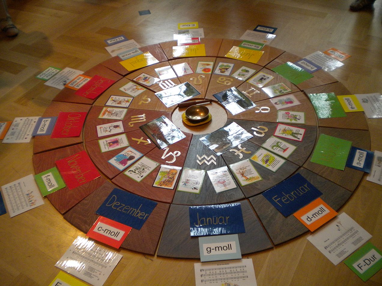Wie unterscheiden sich die pädagogischen Konzepte von Maria Montessori und der Elementaren Musikpädagogik (EMP), wo liegen die Gemeinsamkeiten? Dieser Fragestellung wurde bei dem gemeinsamen Termin nachgegangen, in diesem Fall anhand des Vergleichs der Grundideen des Orff-Schulwerks mit der musikdidaktischen Konzeption Maria Montessoris. Zunächst sollten die theoretischen Grundlagen anhand von Vorträgen vermittelt werden, um sie anschließend anhand zahlreicher Montessori-Materialien gleich in die Praxis umzusetzen.