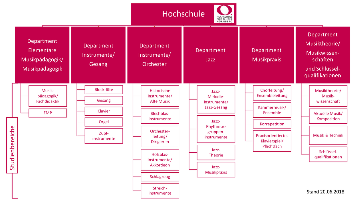 Den einzelnen Departments wird eine Departmentleitung aus dem Kreis der Professorinnen bzw. Professoren vorstehen und jeder Studienbereich wird eine_n Studienbereichsverantwortliche_n erhalten. Es wird für jedes Department ein Departmentrat etabliert werden, der sich aus der Departmentleitung, den Studienbereichsverantwortlichen, ggf. weiteren Lehrenden und studentischen Vertreterinnen bzw. Vertretern (mit beratender Funktion) zusammensetzt.