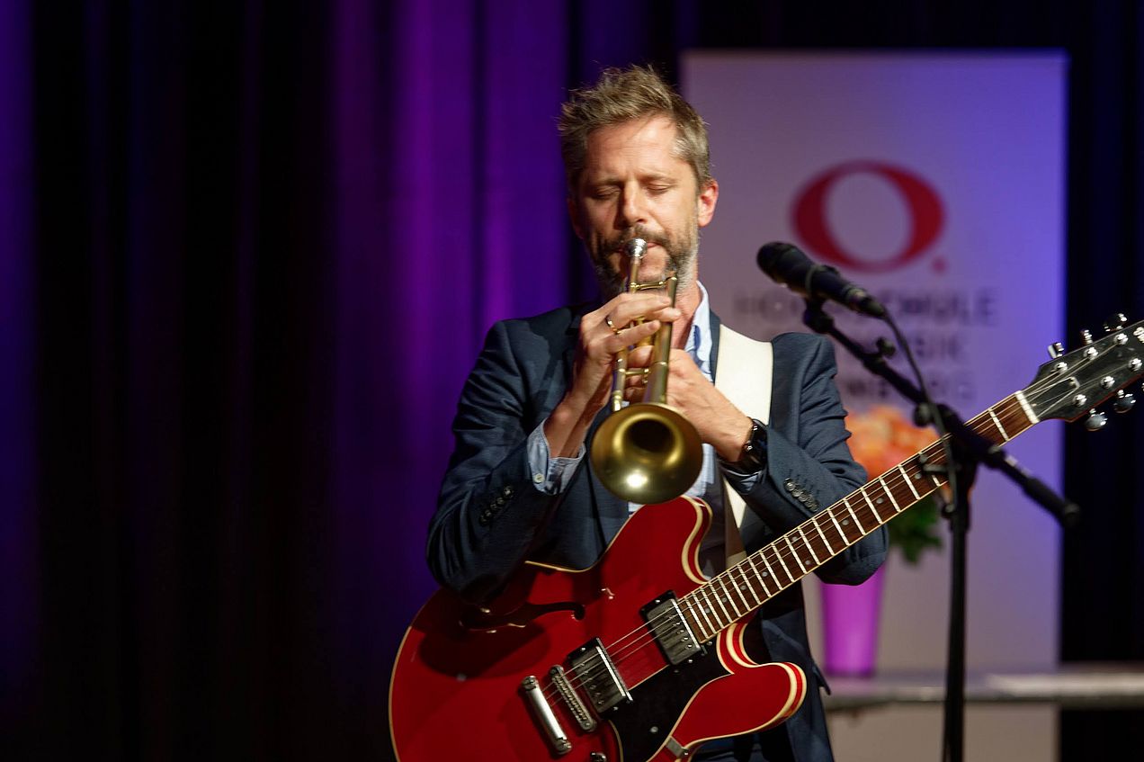 Musikalisch umrahmt wurde die Feier von mehreren Studierenden. Theresa Schauer spielte auf ihrer Gitarre das irische Stück „Teacht An Earraigh“ – übersetzt Frühlingsanfang, von Jens Kommnick. Astor Piazzollas Tango Etude Nr.3 von Kristina Plánavská (Oboe). Runzhe Li Singstimme verzauberte die Gäste mit „Sehnsucht D.879“ und „Nacht und Träume D.827“ von Franz Schubert, in Begleitung von Mar Compte am Klavier. Zum Abschluss stellten Ferdinand Reitberger und Phillip Mohr das Stück „Crossing“ von Benjamin Holmes vor und verabschiedeten die Gäste, die im Anschluss noch mit Freunden und Familie bei einem Glas Sekt auf den stimmungsvollen Abend anstoßen konnten.