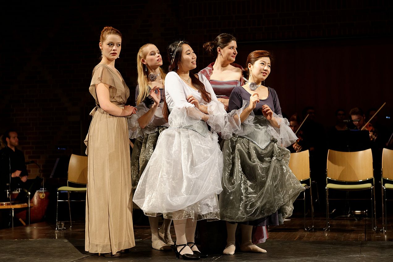 Zur Eröffnung der <link 161 _blank internal-link>Tage Alter Musik 2014</link> hat die Hochschule für Musik Nürnberg in einer halbszenischen Produktion Purcells The Fairy Queen dargeboten. Am 15., 17. und 18. Januar 2014 verwandelte sich der Heilig-Geist-Saal in einen Feenwald, in dem auf den Spuren von Henry Purcell gesungen, getanzt und musiziert wurde.