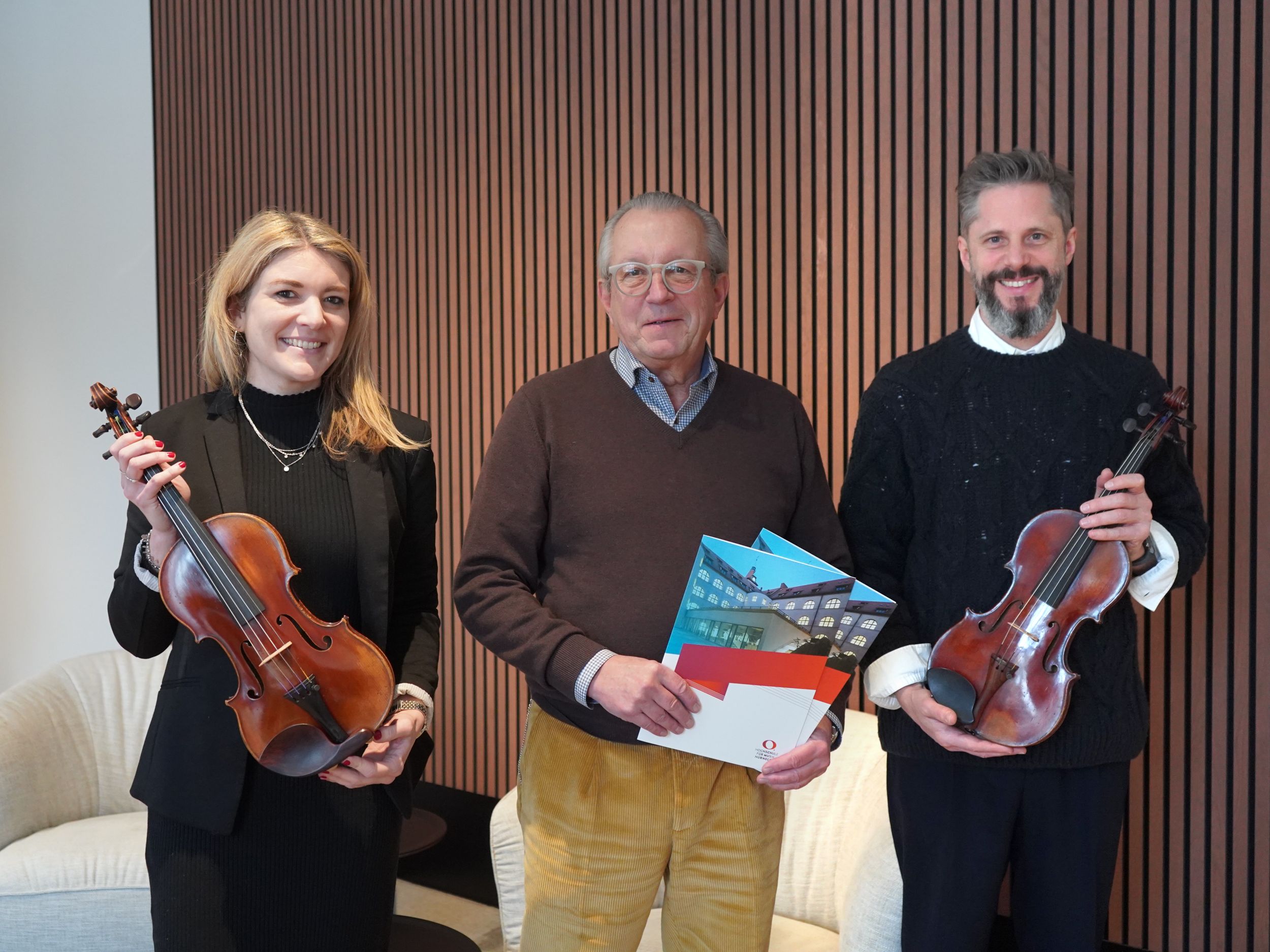 Seit 2023 unterstützt die Stiftung die Hochschule kontinuierlich und substanziell. Bislang wurden insgesamt 30.000 Euro für Deutschlandstipendien, und im Jahr 2025 zusätzlich noch 6.000 Euro zur Vergabe der Preisgelder beim NUEComer Jazz Award bereitgestellt. Mit der nun erfolgten Überlassung zweier wertvoller historischer Violinen wird dieses Engagement in besonderer Weise ausgebaut.