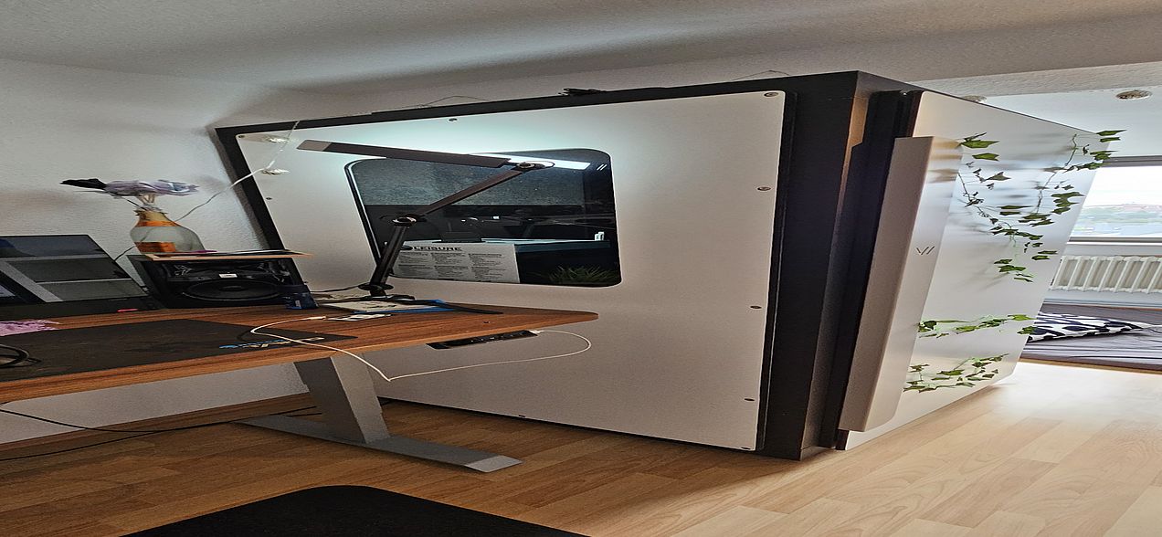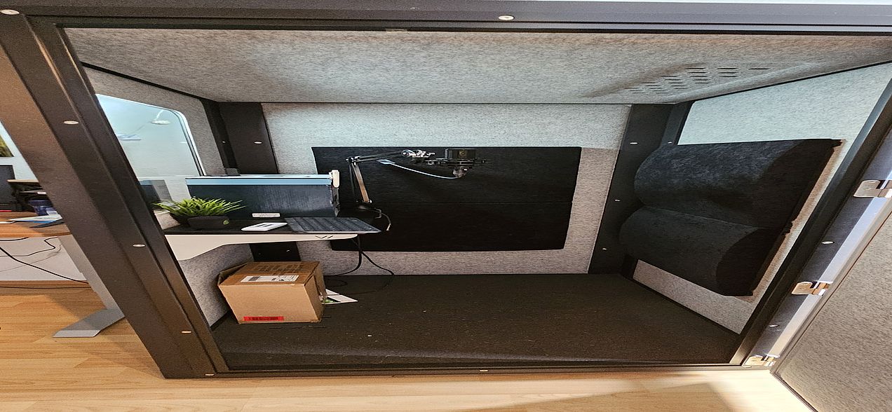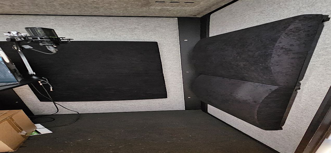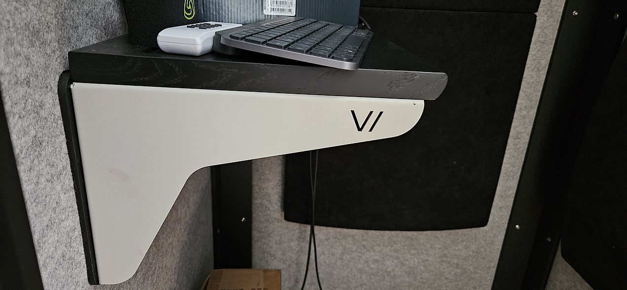 Als Zubehör sind 4 Absorber verbaut sowie eine Tisch (33cm Tiefe) für z.B. iPad mit Texten ö.ä.