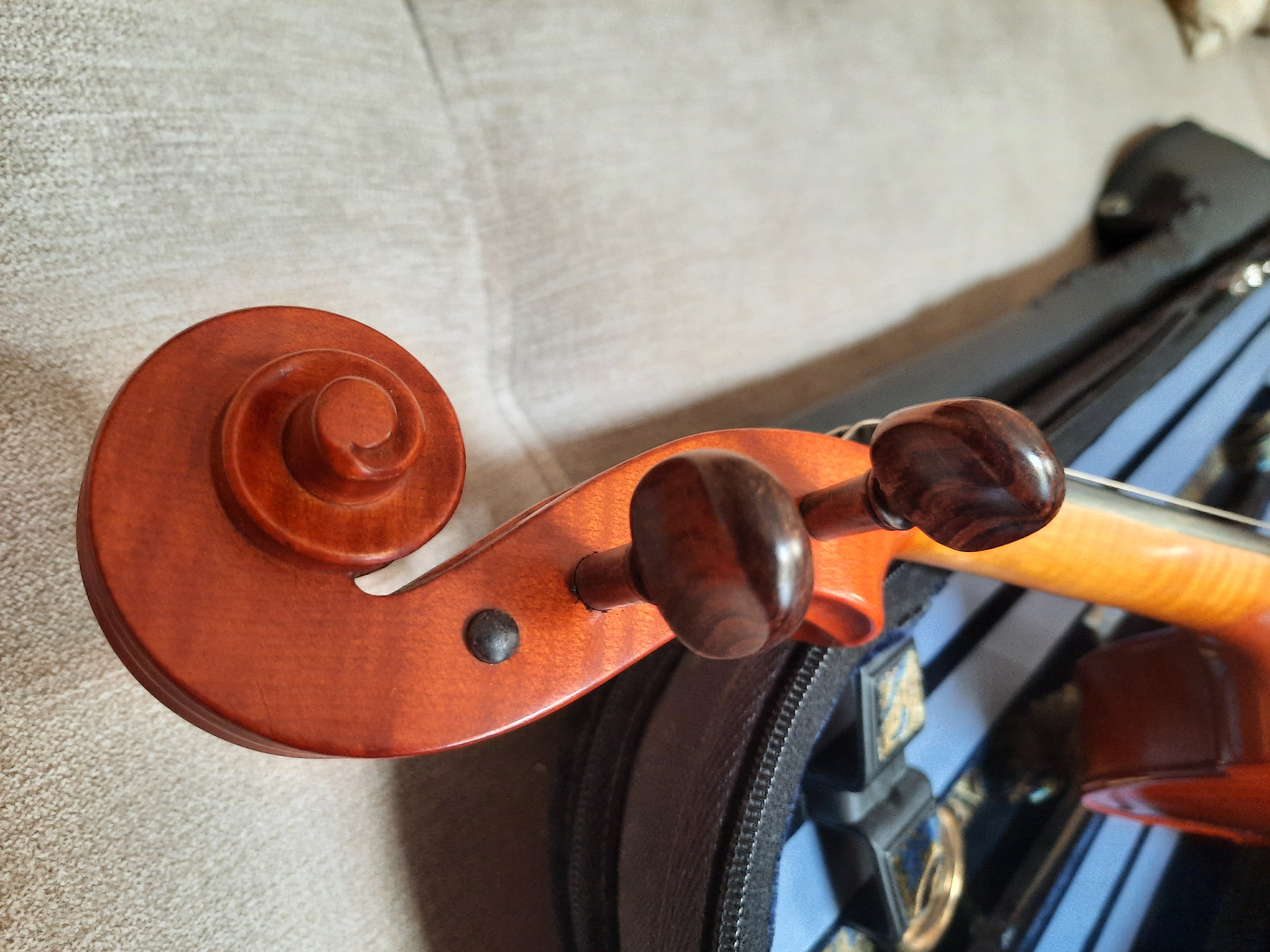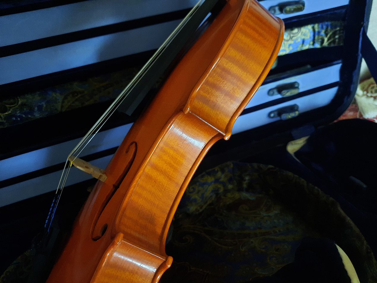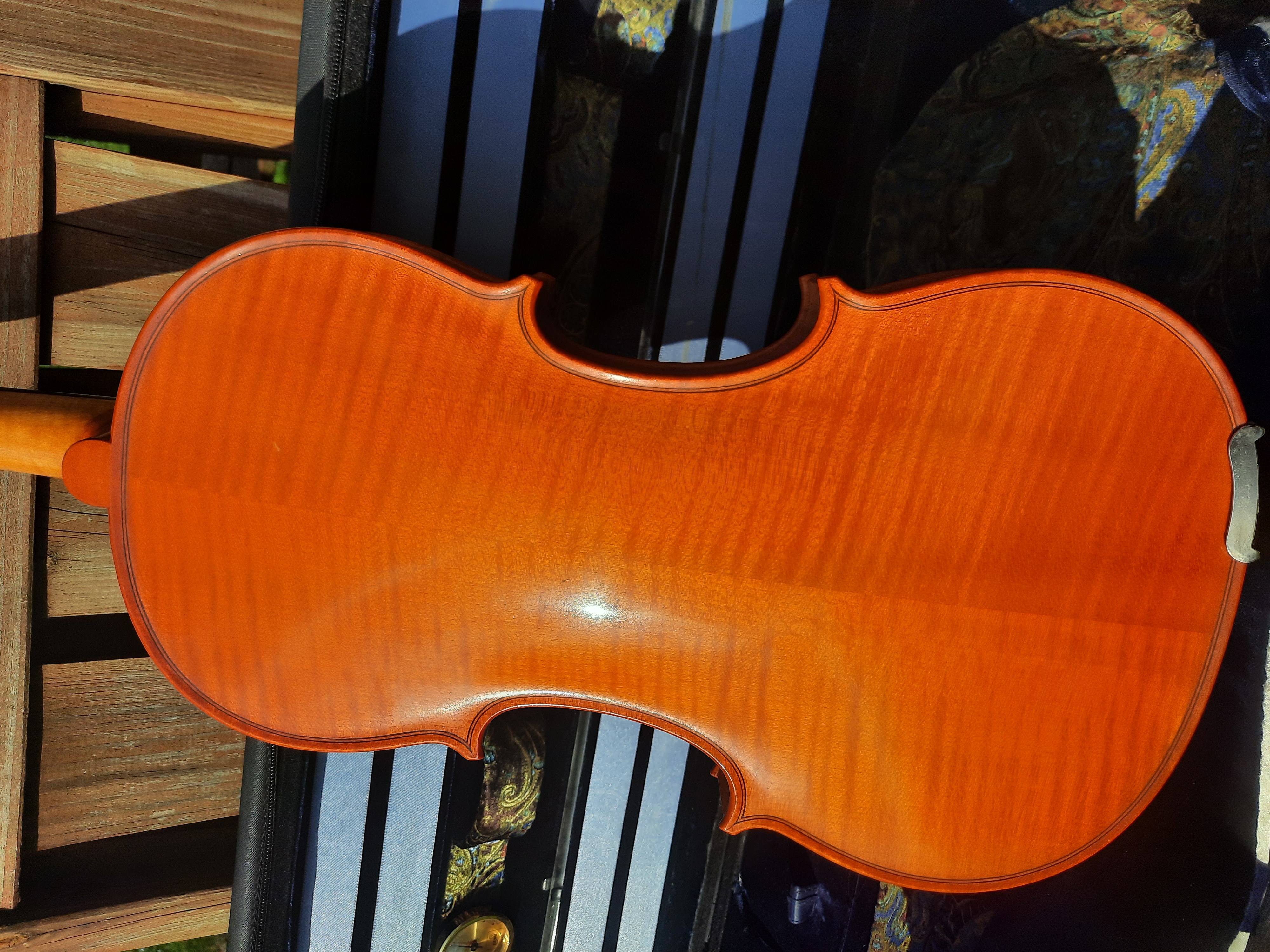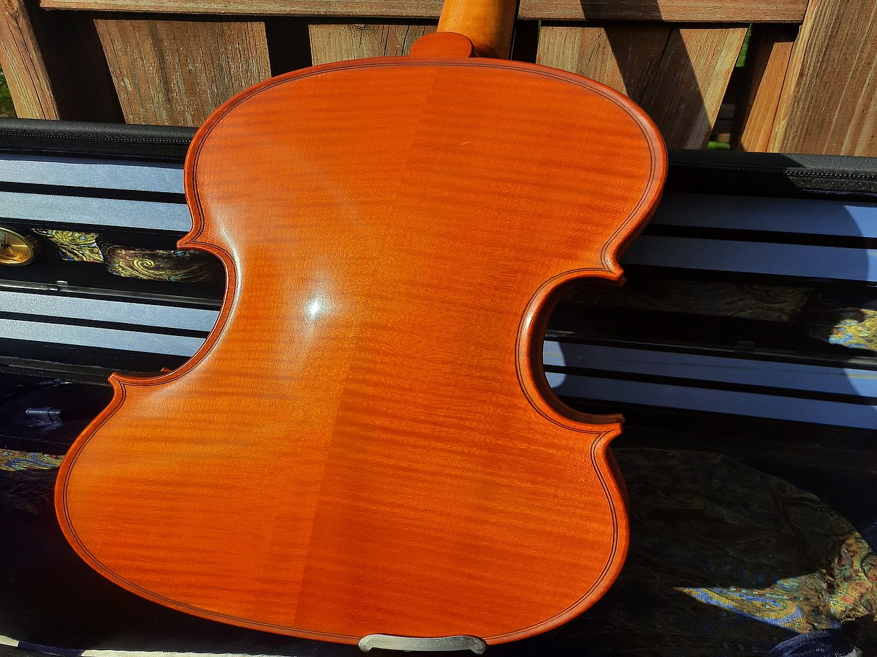 Die Violine von 1989 wurde vom Geigenbauer durchgesehen und mit einem neuen Steg, Saitenhalter, Stimmstock und hochwertigen neuen Saiten ausgestattet. Griffbrett und Obersattel wurden optimiert und die Wirbel