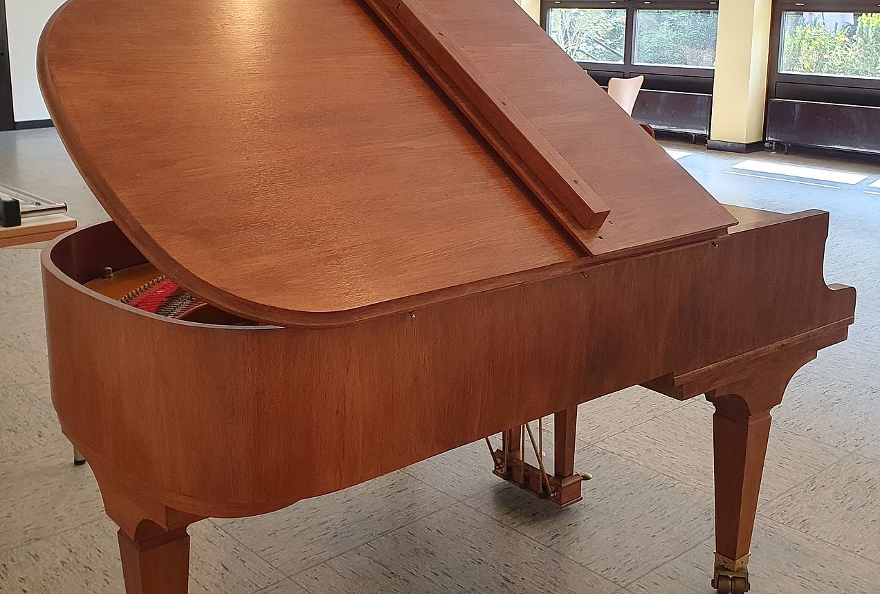 Allerdings hat das Holz an einigen Stellen kleine Beschädigungen, was aber durch eine Oberflächenbehandlung kaschiert wurde. Klanglich und technisch ist der Flügel einwandfrei.