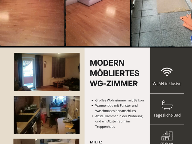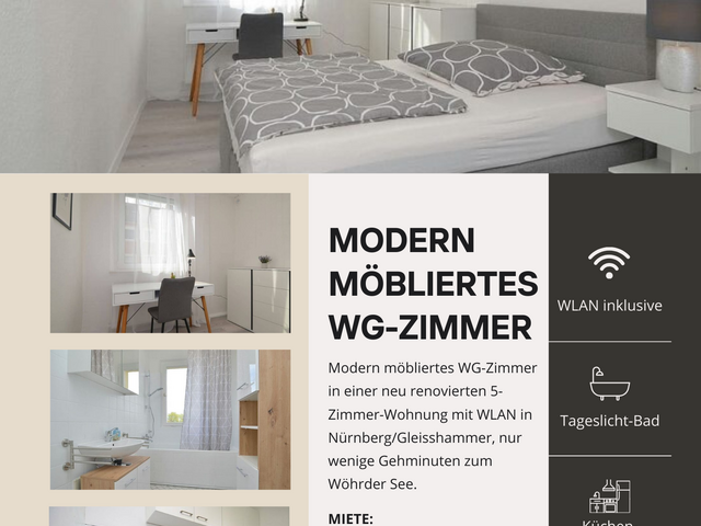 Modern möbliertes WG-Zimmer in einer neu renovierten 5-Zimmer-Wohnung mit WLAN in…