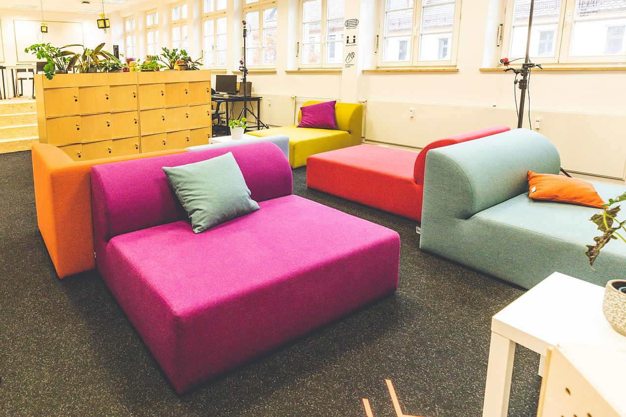 • Mit 82 Quadratmetern bietet der Co-Working-Space eine inspirierende Umgebung für kooperatives Arbeiten, kreatives Brainstorming sowie Workshops und Seminare. Die Anordnung der modularen Möbel ermöglicht eine flexible Raumgestaltung, die sich mühelos an individuelle Bedürfnisse anpassen lässt. Durch die moderne technische Ausstattung eignet sich dieser Raum auch hervorragend für vielfältige Veranstaltungen.