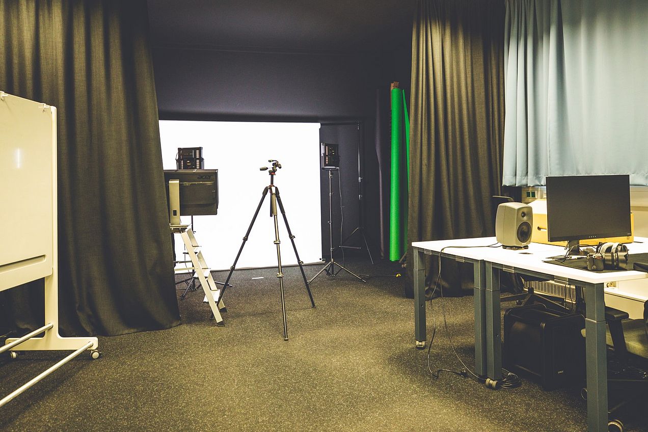 Unsere Einrichtung ist mit einer breiten Palette an Hochleistungsrechnern, VR-Brillen und Kameras und einem Motion-Capture-System ausgestattet, die eine umfassende Erprobung ermöglichen. Im Bereich Fotografie und Videoproduktion setzen wir auf modernstes Profi-Equipment. Hochwertige Video- und Fotokameras, begleitet von Audio-Equipment und Zubehör wie Beleuchtung und Stativen, eröffnen eine Vielzahl von Projektmöglichkeiten auf hohem Produktionsniveau.
