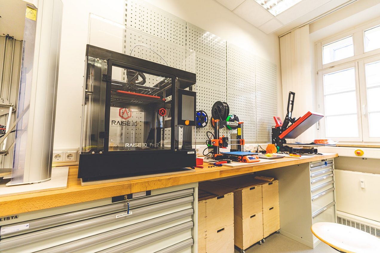 • Die Digitalwerkstatt eröffnet Möglichkeiten zur Erstellung und Verfeinerung von Objekten durch additive sowie auch subtraktive Fertigungsverfahren. Diese fortschrittliche Werkstattumgebung eignet sich perfekt für die Konstruktion von Prototypen und die präzise Bearbeitung von Materialien. Sie profitiert von einer breiten Auswahl an Geräten, darunter verschiedene 3D-Drucker, eine CNC-Fräse sowie ein Lasercutter. Zusätzlich steht ein Folienschneidplotter zur Verfügung, der großformatigen Druck und präzises Schneiden ermöglicht.